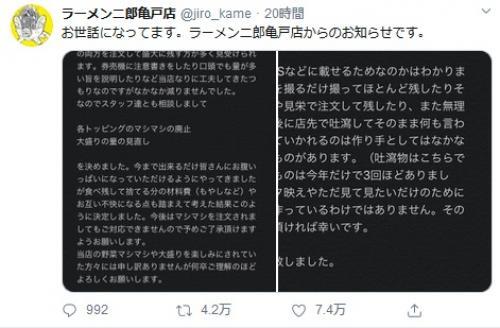 写真だけ撮り箸をつけない客も ラーメン二郎亀戸店がマシマシ廃止 大盛の量の見直しを発表して話題に ニコニコニュース